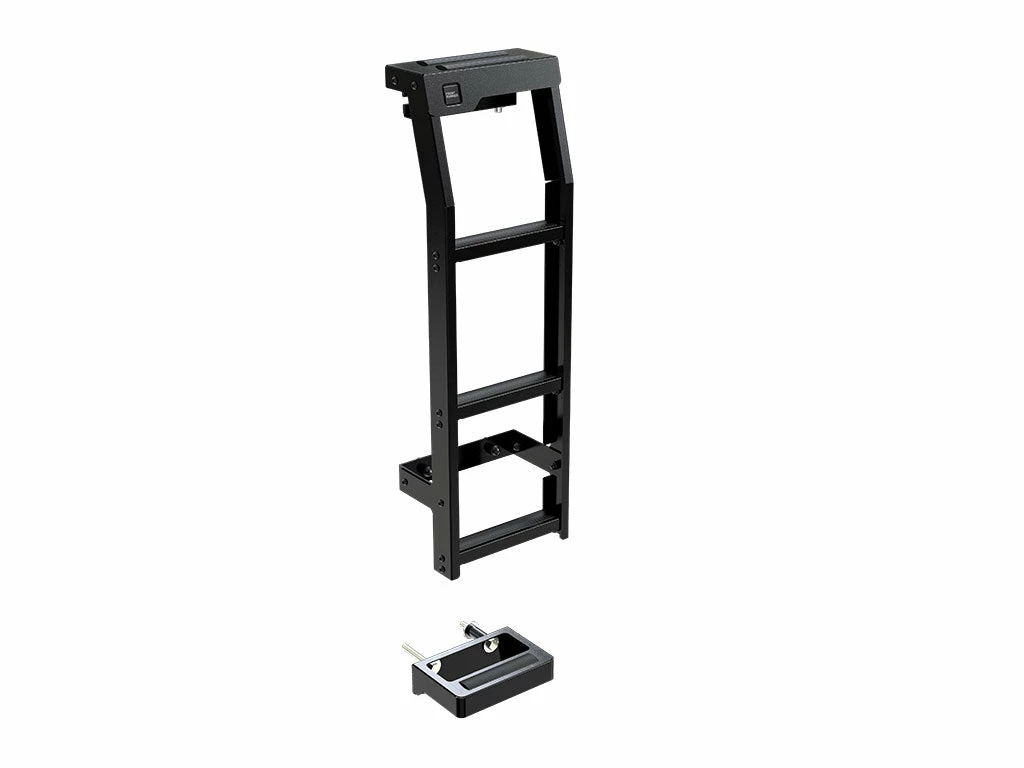 Die Leiter passt sich den Konturen des Fahrzeugs an und ist hergestellt aus schwarz pulverbeschichtetem Stahl für maximale Haltbarkeit.