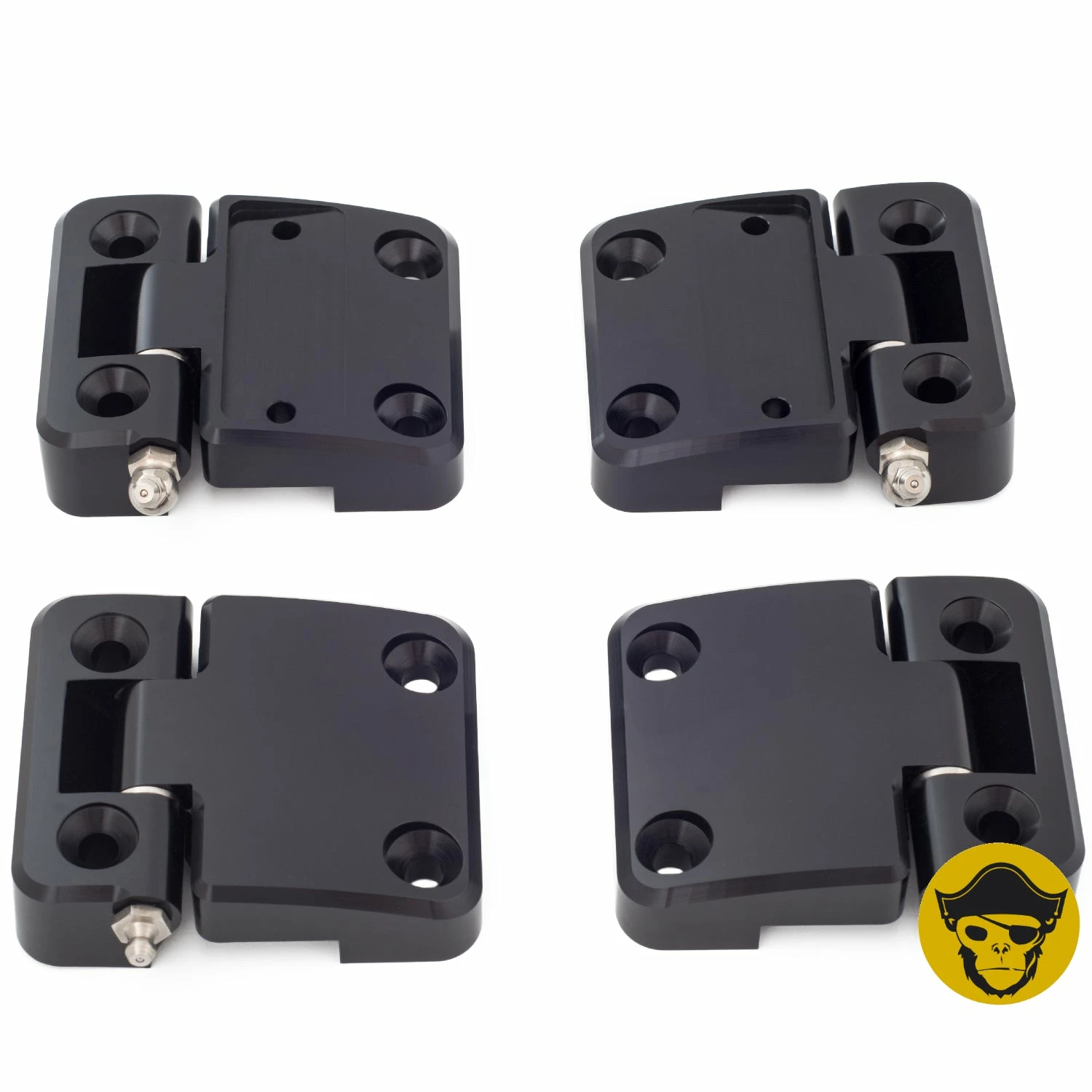 Die originalen Land Rover Türscharniere neigen bei Feuchtigkeit zu Rost. Die Türscharniere von Offroad Monkey verhindern das Eindringen von Feuchtigkeit und durch die eloxierten Aluminium Verarbeitung rosten diese nicht. Die Edelstahl Schmiernippel mit dicker Wendelnut verteilen das Fett ideal und das Edelstahl Gleitlager kann ausgetauscht werden.