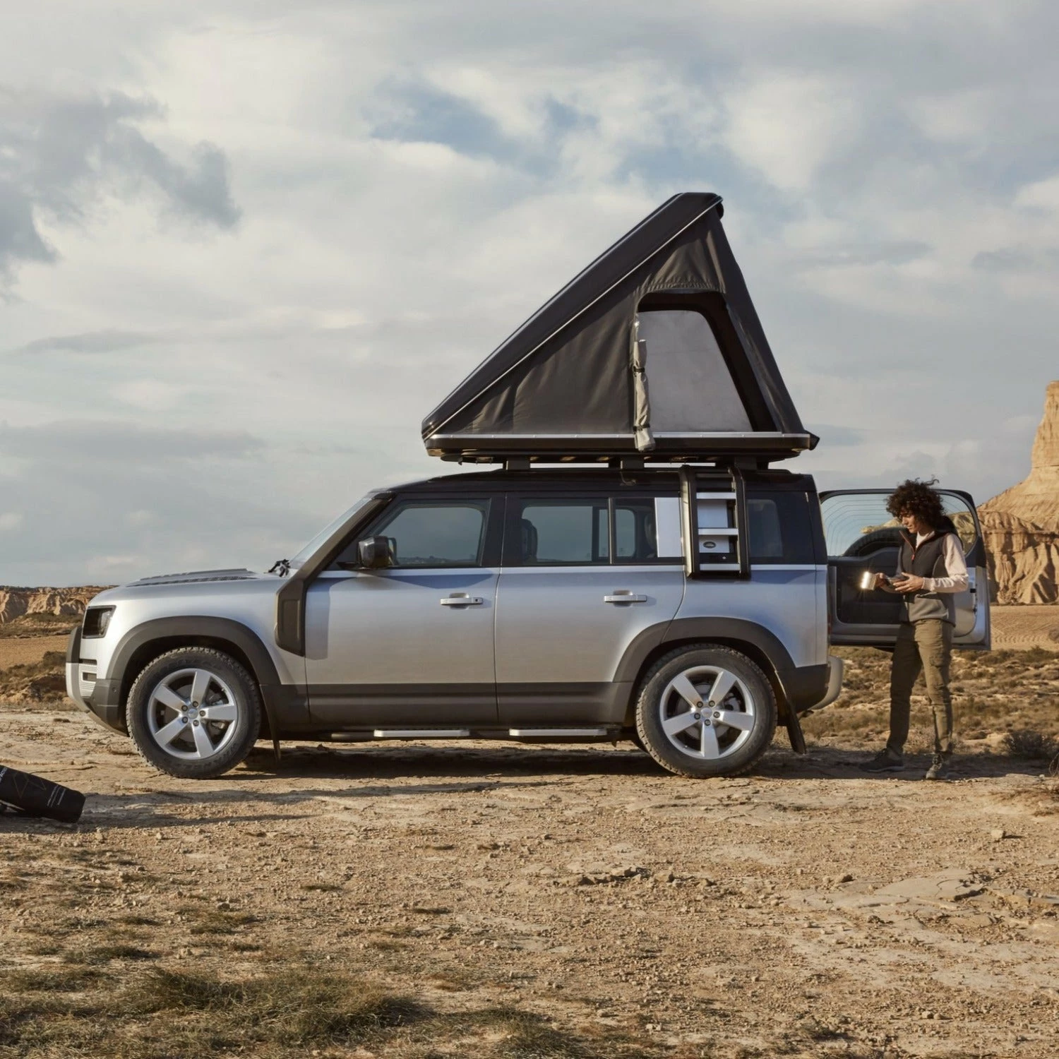 In Kooperation mit Land Rover und Autohome wurde das Dachzelt für den neuen Defender entwickelt. Durch einen leichten Handgriff lässt sich die Dachbox mithilfe der Gasfedern öffnen und das Dachzelt ist bereit. Geschützt Schlafen bei Regen, Sturm und Schnee.