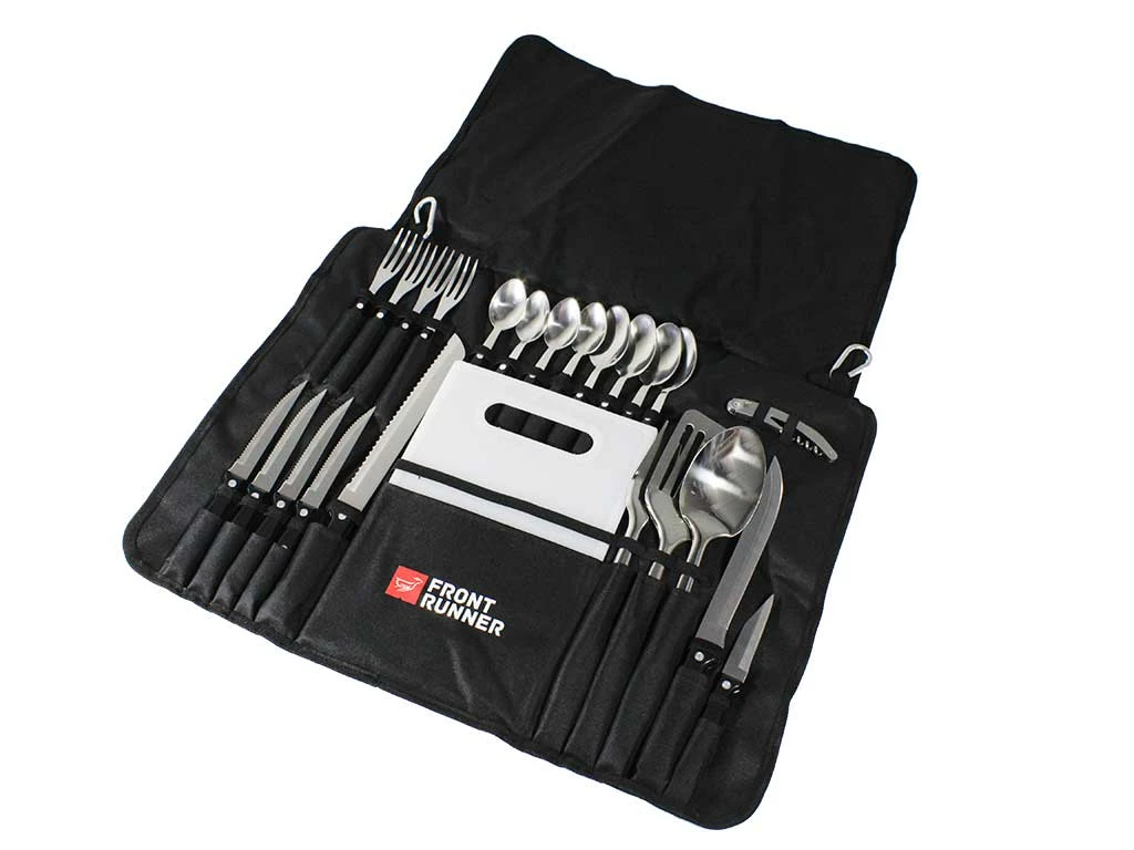 Hochwertiges Besteck- und Küchenutensilienset von Front Runner. Alles was zum Kochen und Essen benötigt wird, jetzt ganz einfach in Deinem Camp aufhängen und sicher wieder einrollen und verstauen. Natürlich ohne zu klappern.