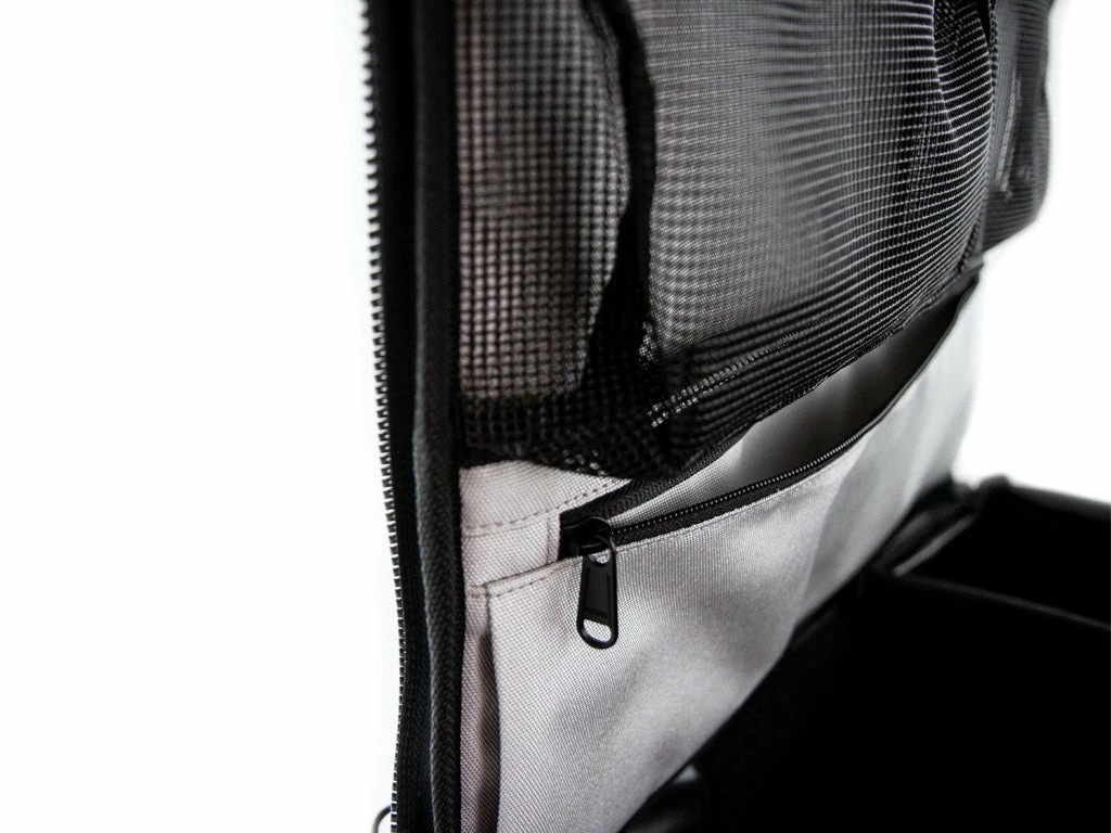 Die Box besitzt stabile Innenwände, außen widerstandsfähigen Stoff und ihr Innenleben ist aus leicht zu säuberndem Vinyl.