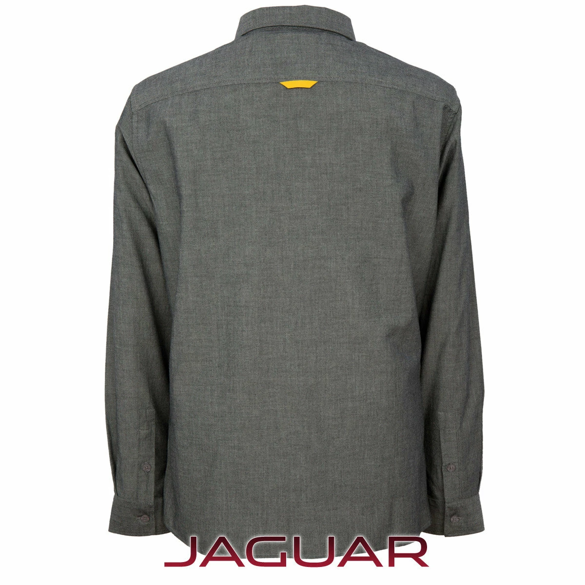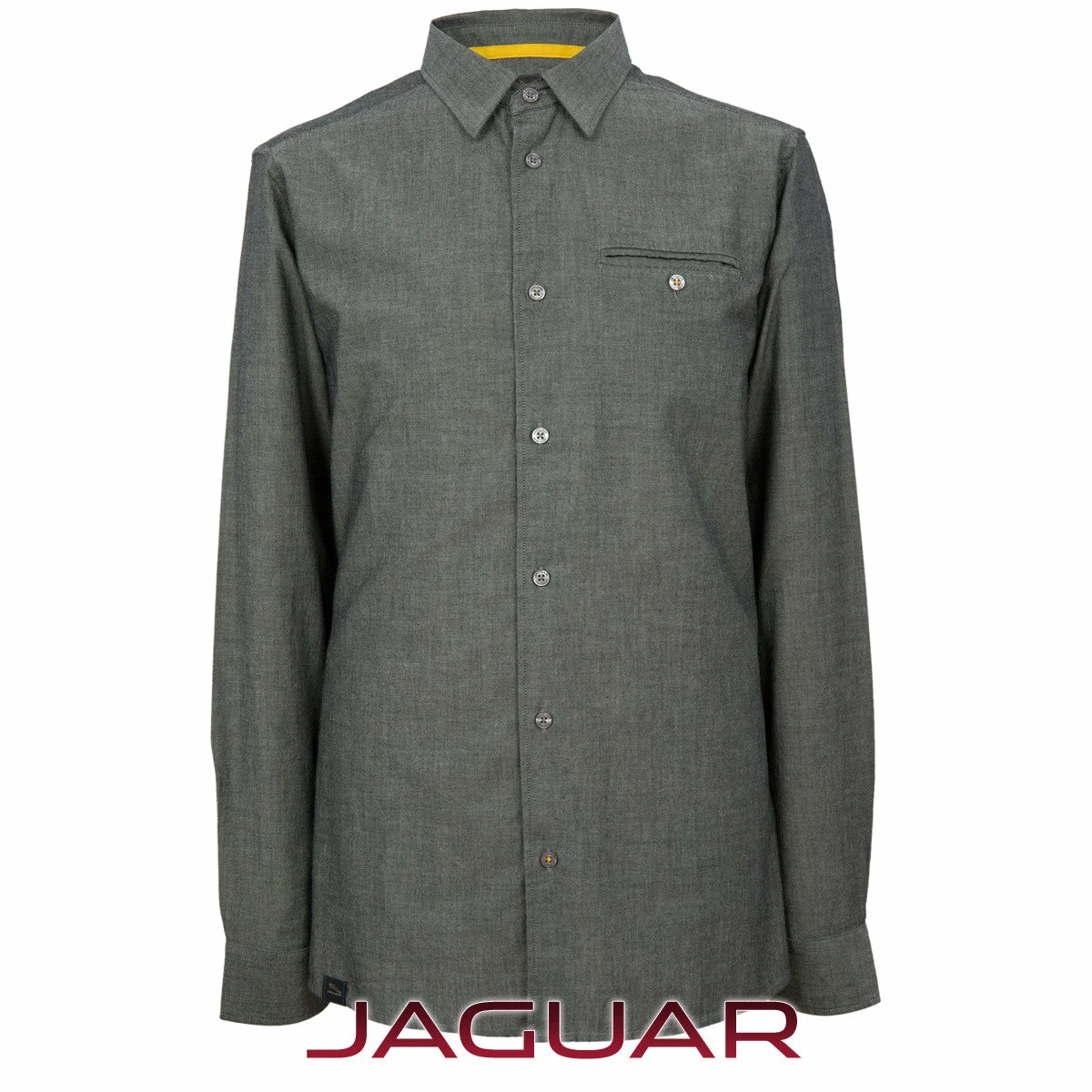 Paspeltasche auf der Brust, Jaguar-Leaper Etikett und blaue Streifen seitlich.