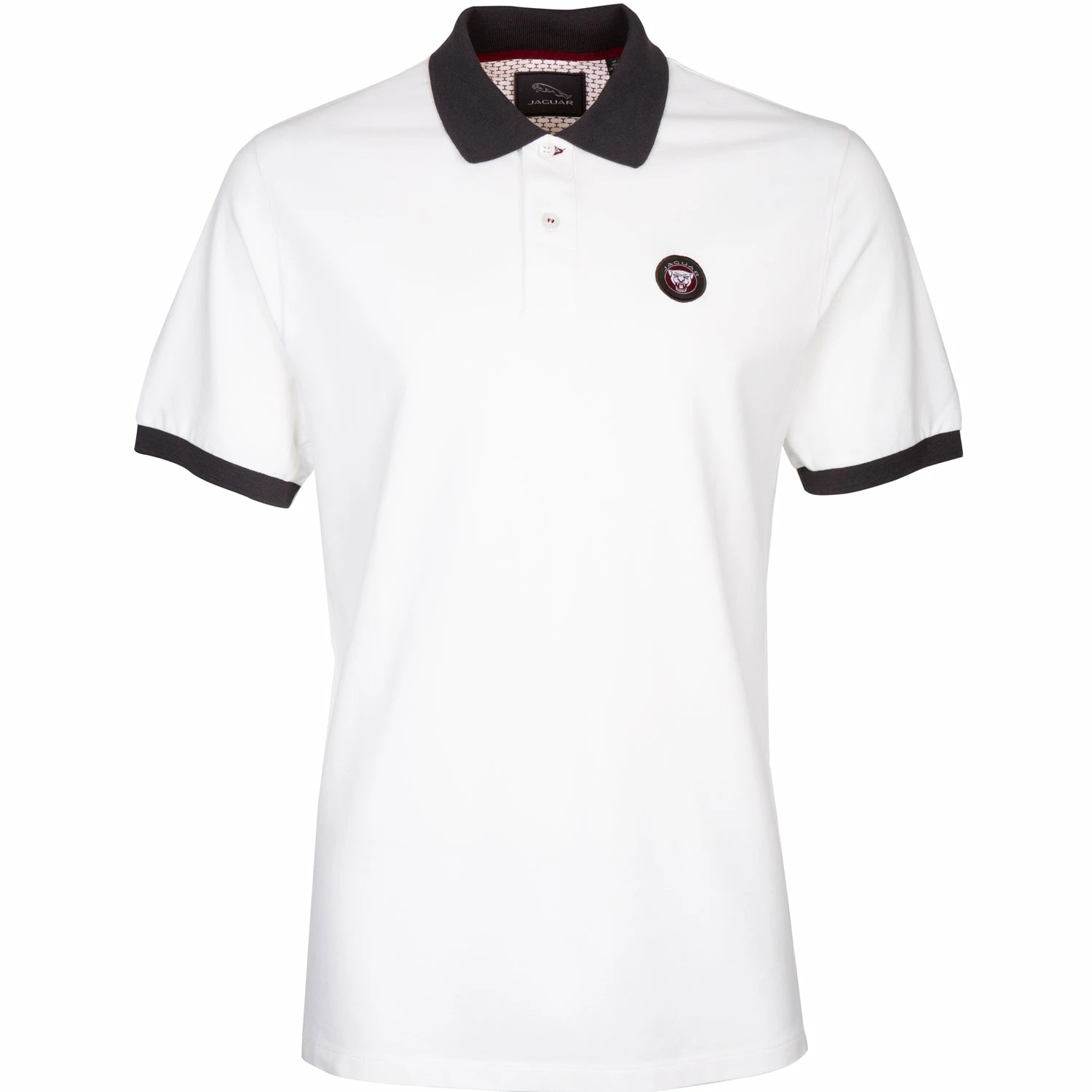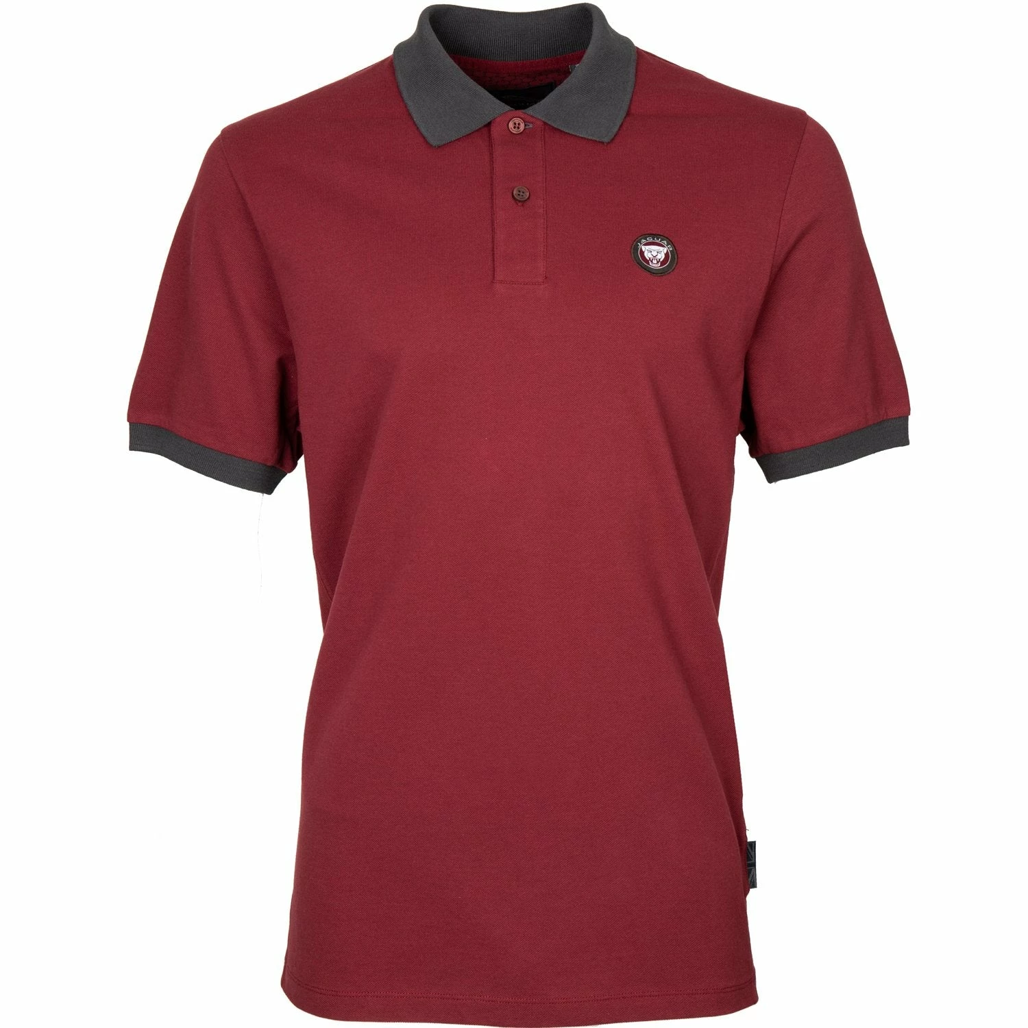 Jaguar Poloshirt mit Growler auf der Brust und dunkelgrau abgesetzen Kragen und Ärmeln.