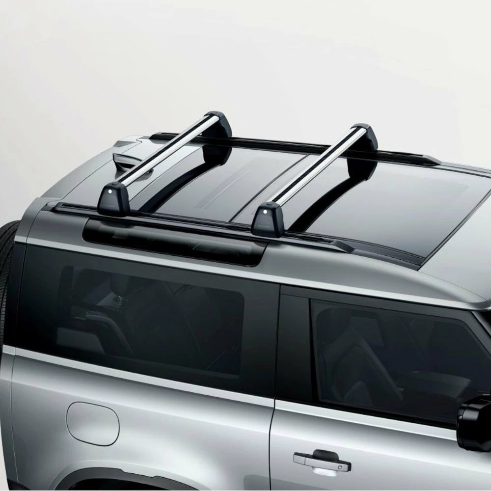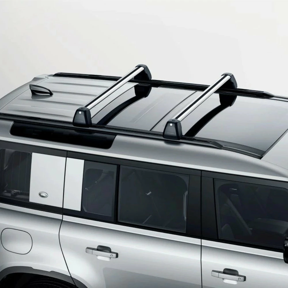 Originaler Land Rover eloxierte Aluminium-Dachquerträger für die Montage verschiedener Zubehörteile. Diese können abgeschlossen werden. Die T-Schienen bieten eine kinderleichte Anbringung und die Entfernung von Dachgepäckzubehör.