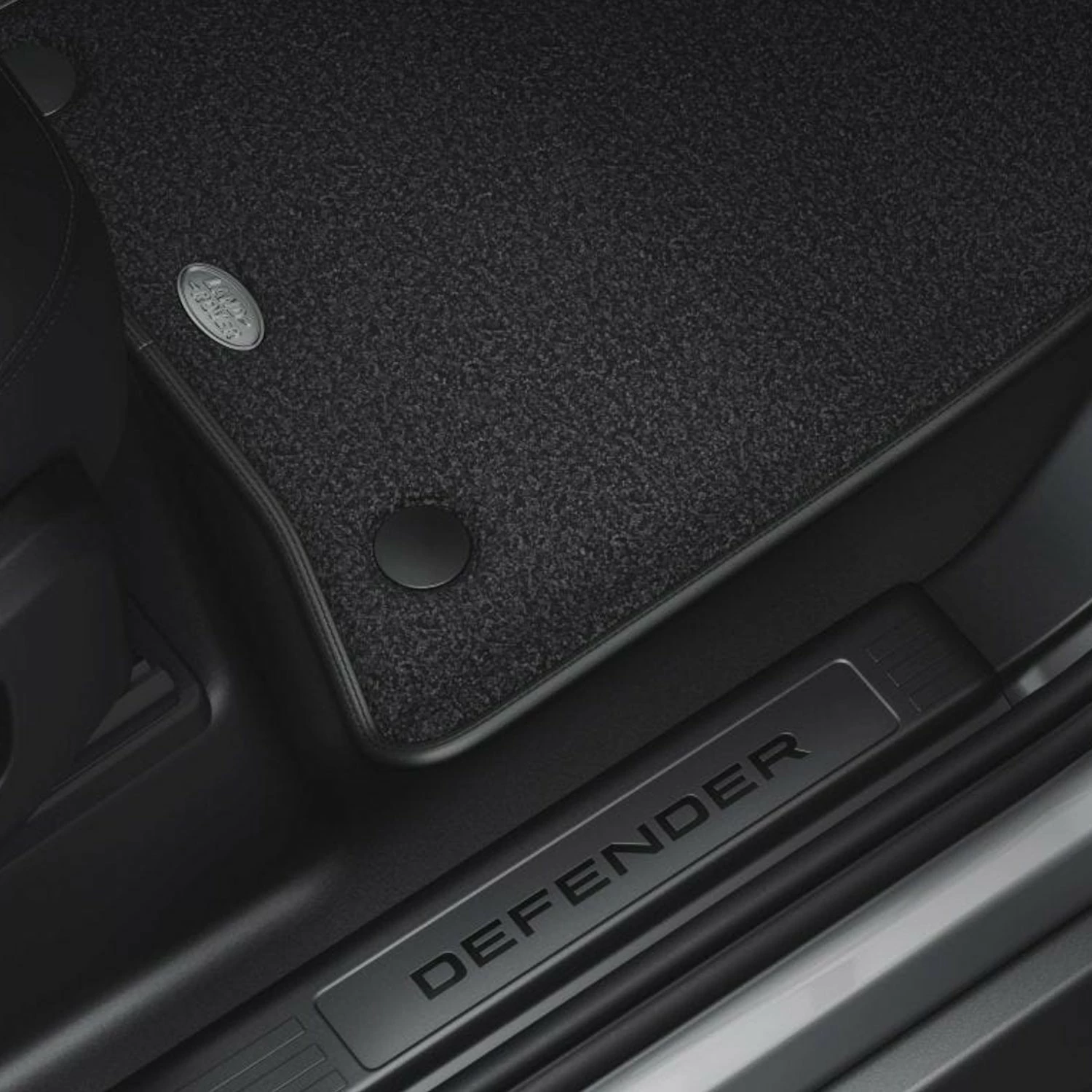 Dreiteiliges Fußmatten-Set maßgeschneidert für den neuen Defender. Sie besitzen eine wasserabweisende Rückseite sowie ein geprägtes Land Rover Emblem.
