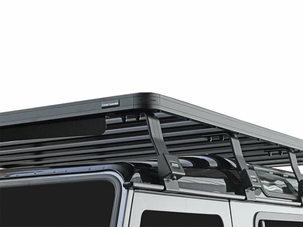 Dieses 1964 mm (L) x 1425 mm (B) große Slimline II Dachträger Kit beinhaltet die Slimline II Plattform, einen Windabweiser sowie 4 Befestigungsfüße (Paare), mit denen Du die Plattform auf Deinem Land Rover Defender 90 (1983 – 2016) montieren kannst. Dieses Kit ist höher und bietet Platz für die Montage von Front Runner Campingtischen oder anderer kompatibler Ausrüstung unter dem Dachträger. Das System lässt sich leicht mit den offroadtauglichen Füßen installieren. Es ist kein Bohren erforderlich.