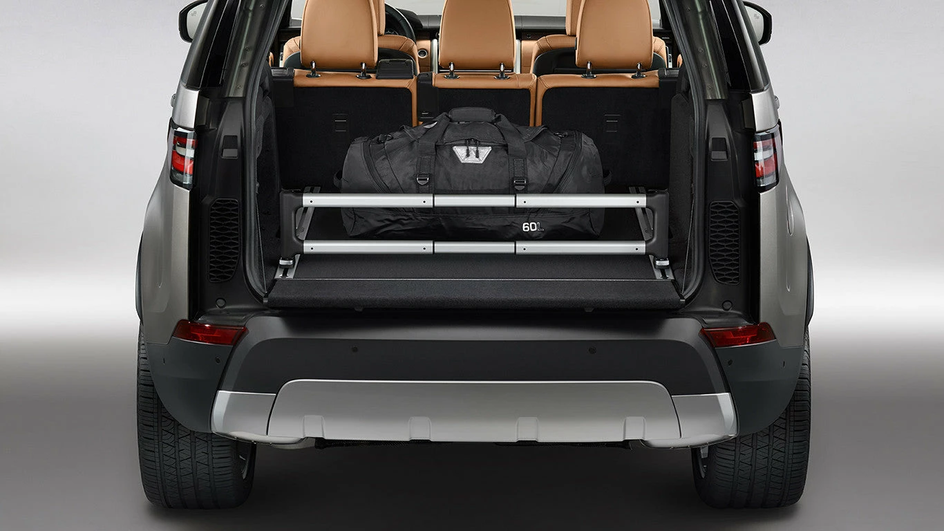 Die Original Land Rover Gepäckrückhaltevorrichtung kann über einen Schnellverschluss in den Gepäckraumschienen befestigt werden und ermöglicht so eine flexiblere Nutzung des vorhandenen Stauraums.