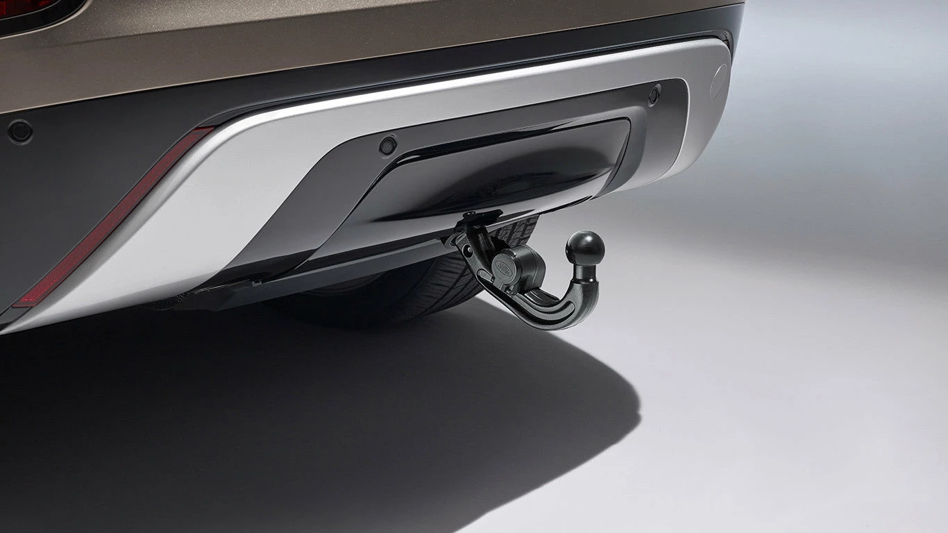 Die Original Range Rover Velar elektrisch ausfahrbare Anhängerkupplung kann über einen Schalter im hinteren Laderaum oder über das Infotainment-System bedient werden. Bei Nichtgebrauch verschwindet sie diskret hinter der hinteren Stoßstange. Das Set beinhaltet alle für den Einbau benötigten Komponenten wie Kupplungselektronik und Abdeckklappe.