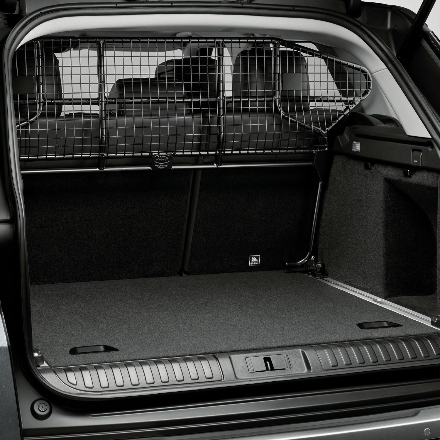 Gepäck-/Hundeschutzgitter in zwei Varianten. Erhältlich als volle Höhe und halbe Höhe (oberer Teil). Mit Skidurchreiche, falls geeignete Rücksitze montiert sind. Das Gitter ist mit Gepäckraum-Gummimatte, Gepäckraumwanne, Gepäckraumschienensystem und Gepäckraumabdeckung kompatibel.