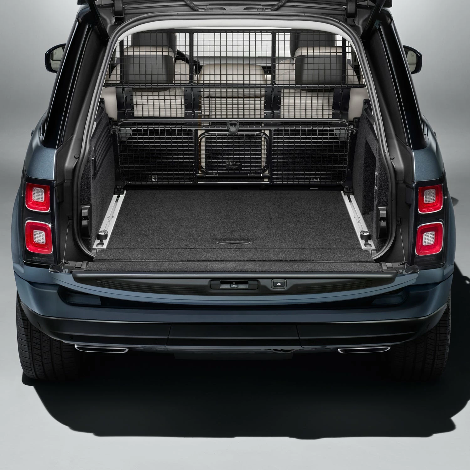 Das Original Land Rover Gepäck-/Hundeschutzgitter verhindert, dass Tiere oder Gepäck in den Fahrzeuginnenraum gelangen. Eine paraktische Durchreiche ermöglicht den Transport von längeren Gegeständen.