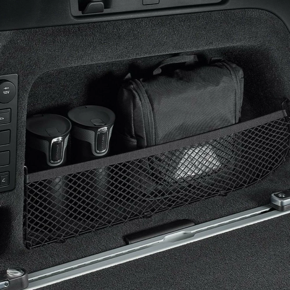 In dem seitlichen Original Land Rover Gepäckraumnetz lassen sich kleinere Gegenstände einfach und leicht zugänglich verstauen.