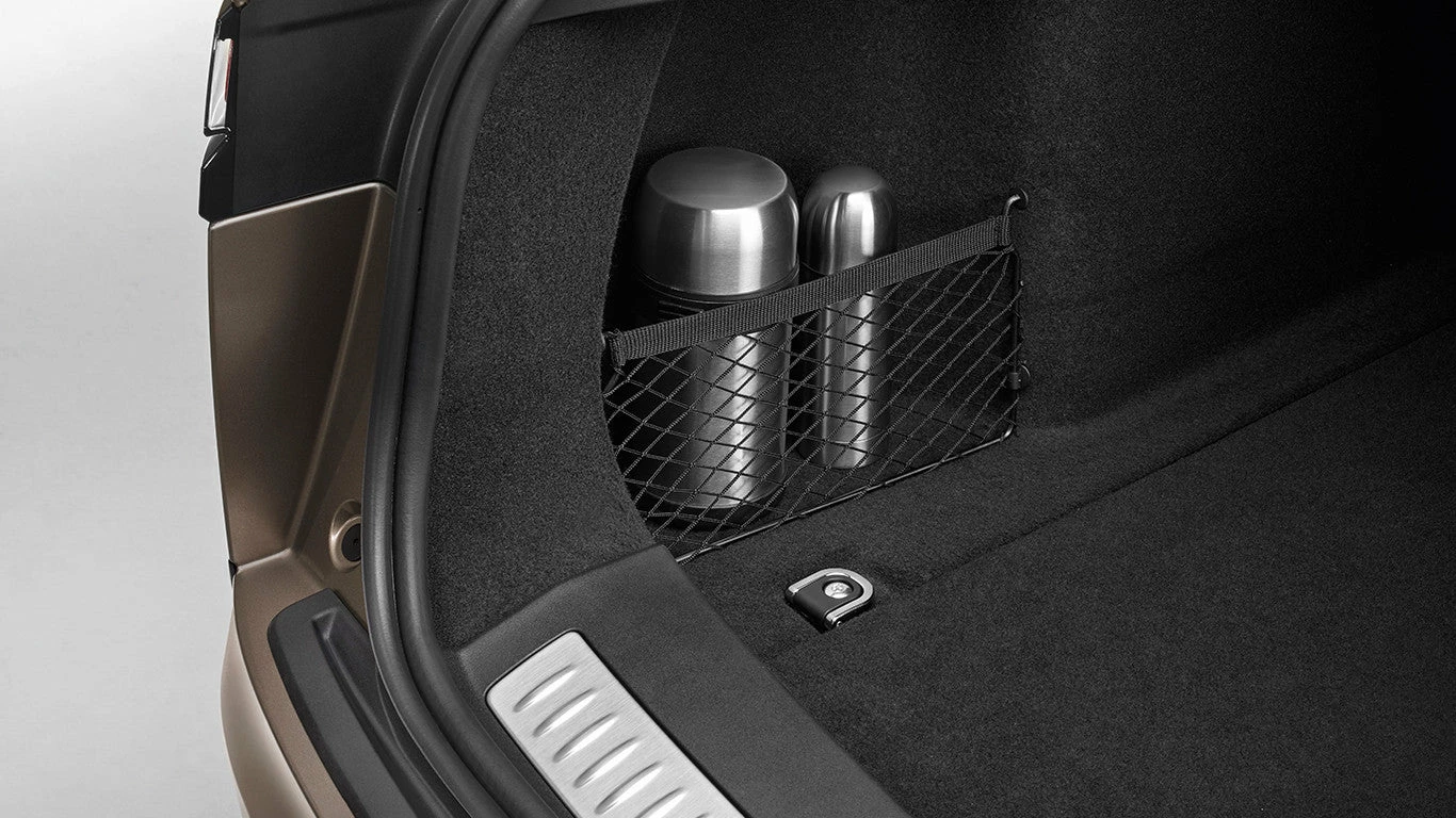 Kleinere Gegenstände lassen sich im seitlichen Laderaumnetz einfach und leicht zugänglich verstauen. Nicht kompatibel mit Luxury-Laderaummatte, Laderaum-Gummimatte, Laderaumwanne oder vollwertigem Ersatzrad.
