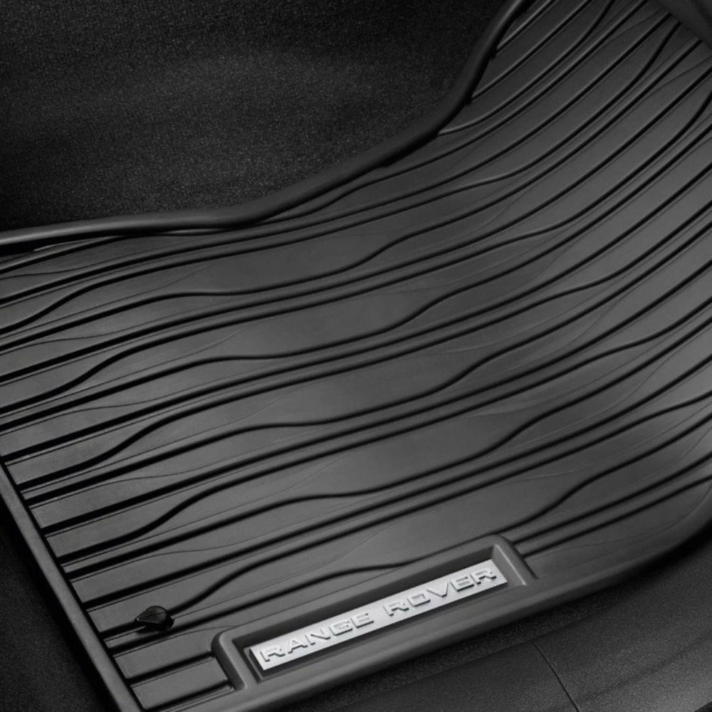 Original Range Rover Velar Gummifußmatten in der Farbe Schwarz.