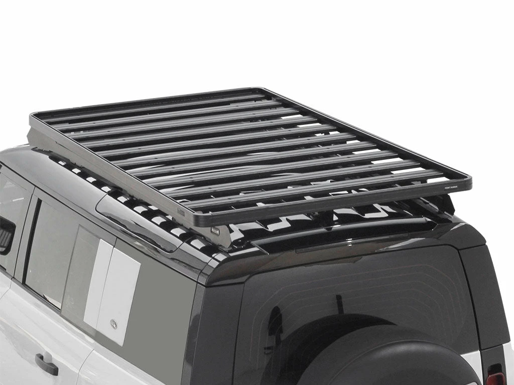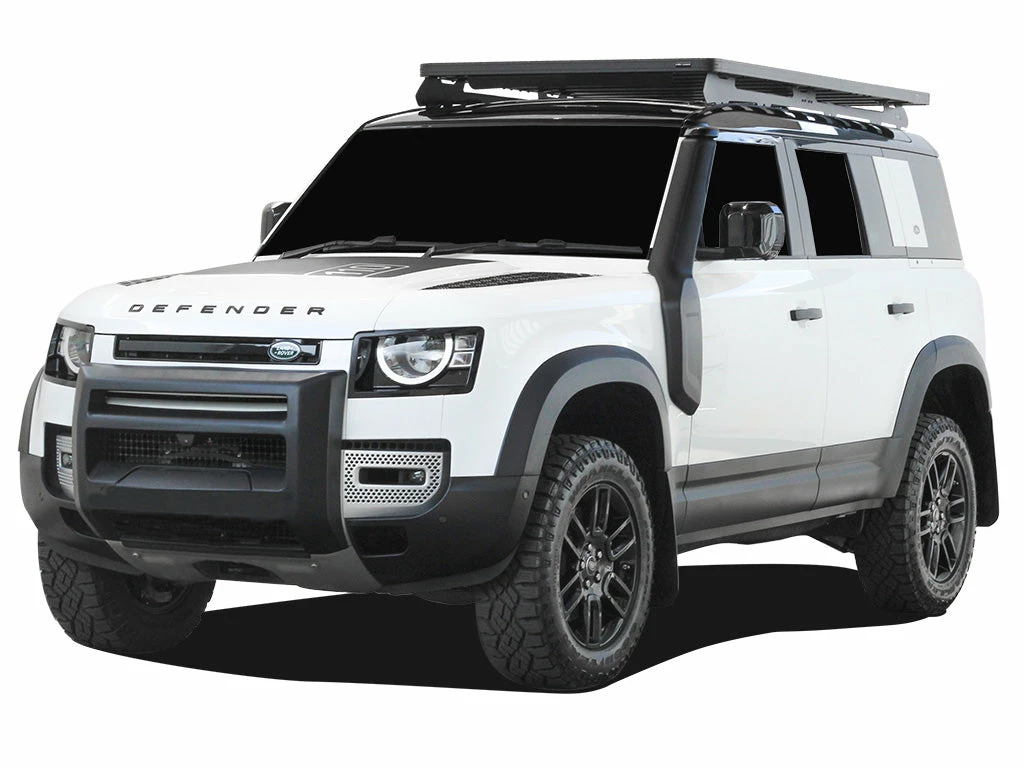 Dieses 2166 mm (L) x 1255 mm (B) große Slimline II Dachträger Kit beinhaltet die Slimline II Plattform, einen Windabweiser sowie 1 Fußreling (Paar), mit dem Du die Plattform auf Deinem Land Rover New Defender 110 (2020 – Heute) montieren kannst. Das System lässt sich leicht auf den vorhandenen werkseitigen OEM Befestigungspunkten installieren. Für die Montage der Fußreling müssen die OEM Schienen entfernt werden.