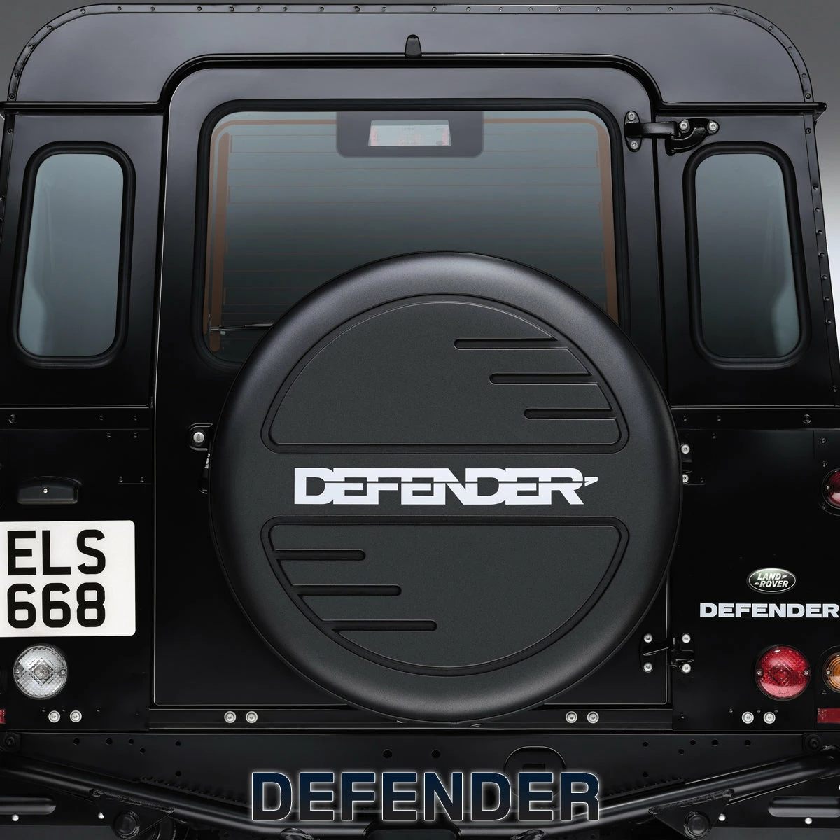 Reserveradabdeckung aus Kunststoff mit Defender Logo.