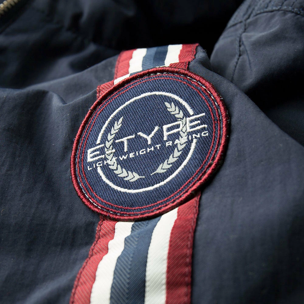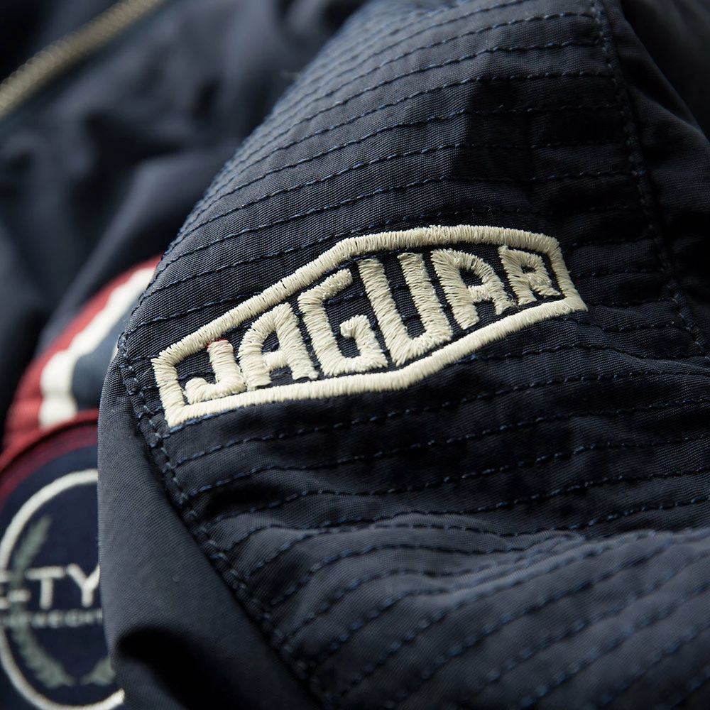 Die Fliegerjacke ist mit einem Rennstreifen Branding und dem E-Type Emblem versehen.