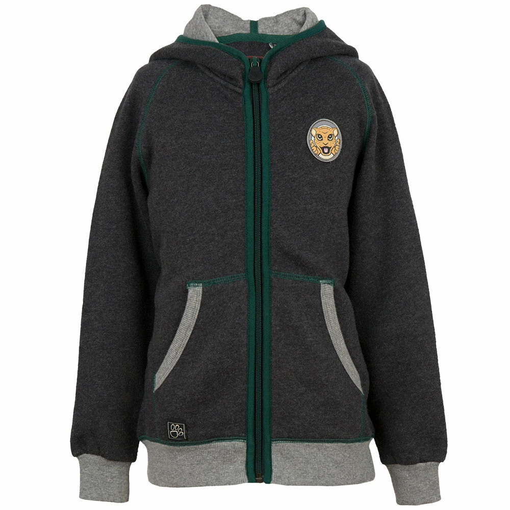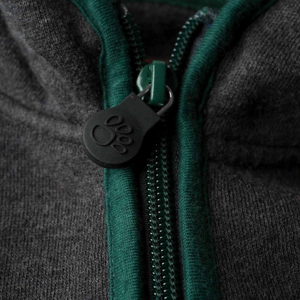 Grau melierte Jaguar Kapuzenjacke mit Reißverschluss und gerippten, kontrastfarbenen Bündchen.