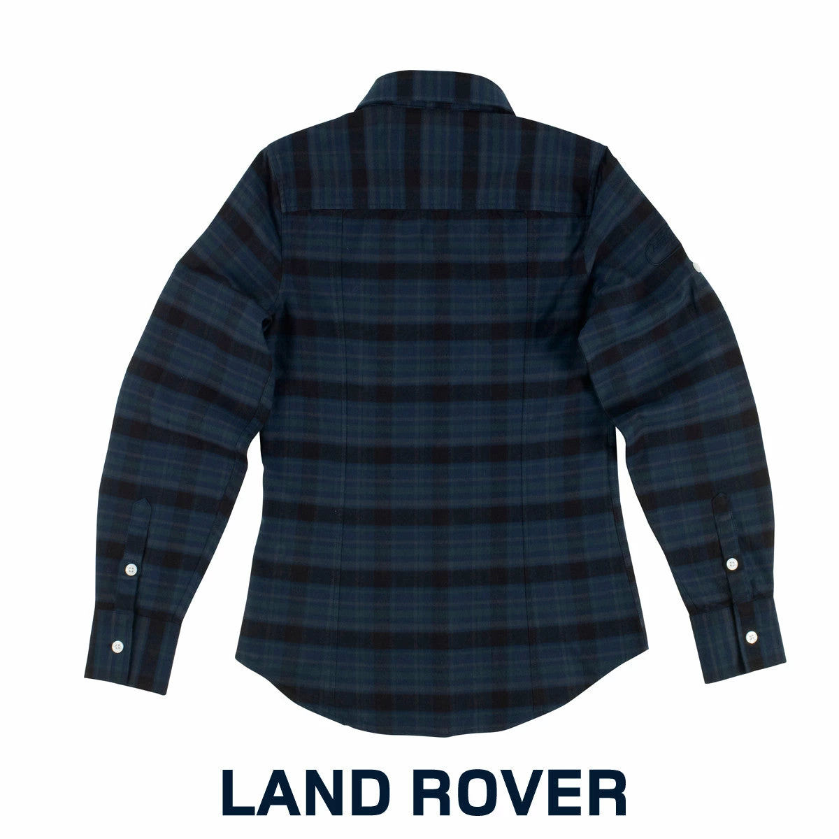 Mit dem Land Rover Logo auf dem rechten Arm.