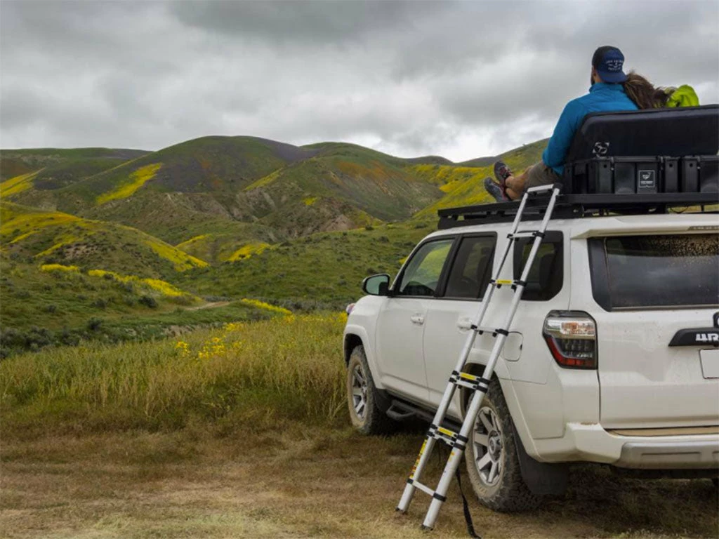 Diese Halterungen verhindern, dass die Leiter seitlich abrutschen kann, um Dir einen sicheren Halt zu garantieren, wenn Du auf Deinen Dachträger kletterst.